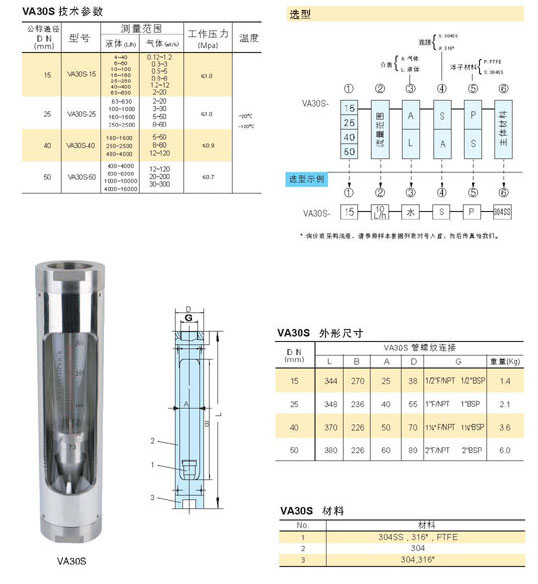 一、概述:VA30S玻璃轉子流量計是我公司的新產(chǎn)品,管螺紋連接,本體及上下接頭均為304SS,廣泛應用于測量水、空氣等流量。■精度:±1.5%(金屬浮子) 量程比:10:1 ±2.5%(樹(shù)脂浮子) 密封圈:氟橡膠或其它